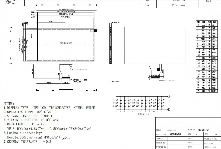 | 关键描述: | 8寸高清液晶屏 800*480分辨率 50pins 450亮度 TTL接口 IPS全视角TFT液晶显示屏 |