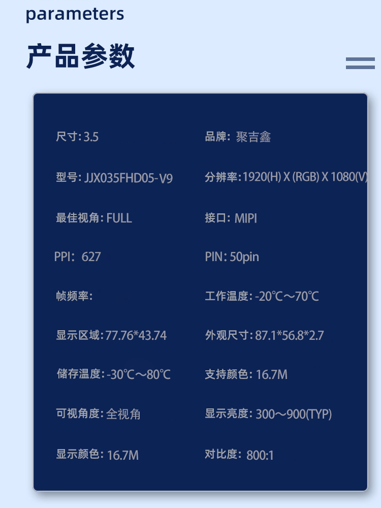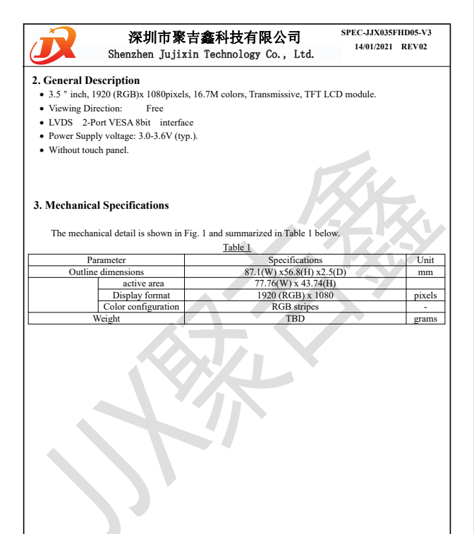 | JJX035FHD05-V3_19201080_50P_LVDS_6S1P_500_2.5_51MM直排_SPEC_V02_20210525.pdf | 1.2 M | 请联系我们索取 |