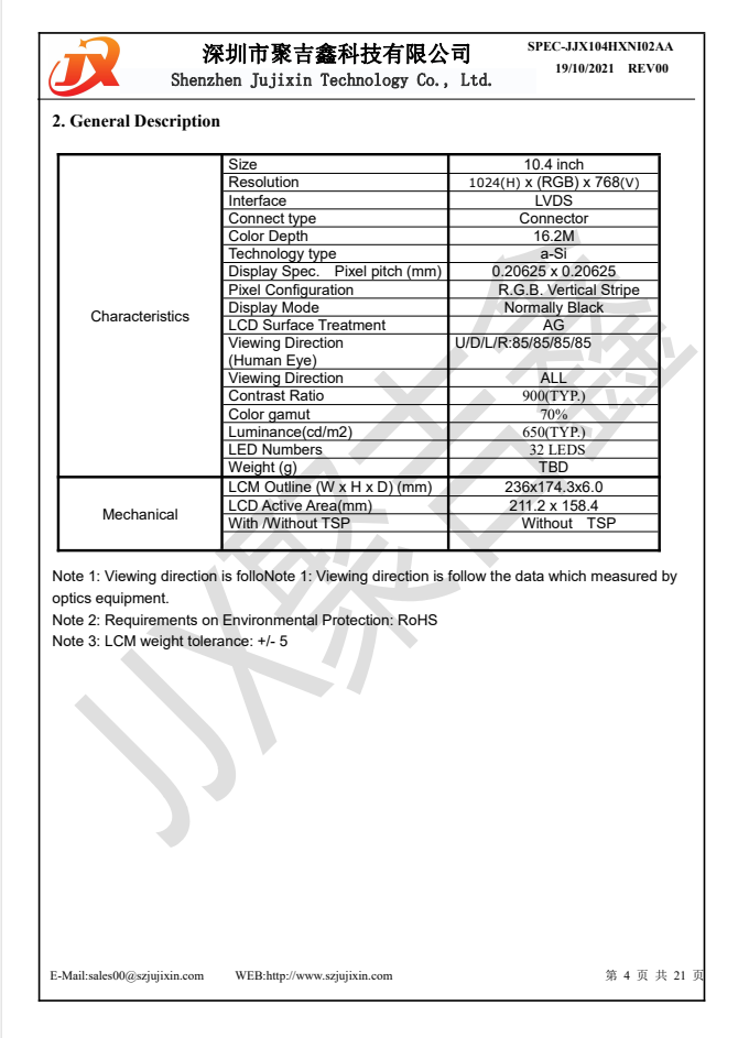 | JJX104HXNI02AA_1024768_30P_LVDS_4S8P_650_6.0_SPEC_V01_20220310.pdf | 1.2 M | 请联系我们索取 |