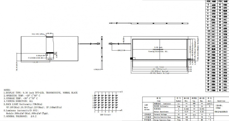 | 关键描述: | 9.36寸TFT液晶显示屏 1024*400 IPS液晶屏 600亮度 60PINS LVDS 长条屏 |