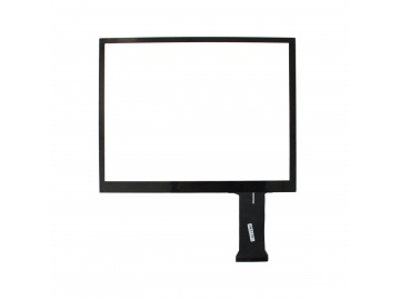 夹层ITO涂层作为工作面,四个角上引出四个电极,内层ITO为屏蔽层以保证良好的工作环境。