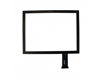 夹层ITO涂层作为工作面,四个角上引出四个电极,内层ITO为屏蔽层以保证良好的工作环境。