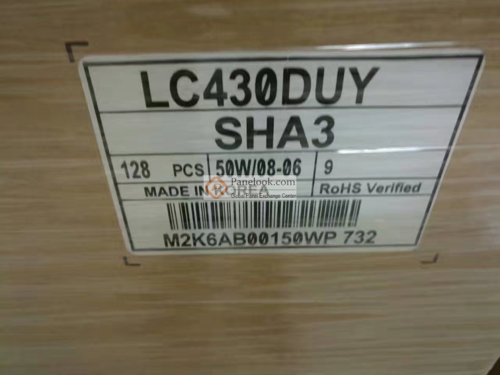 LC430DUY-SHA3是LG Display (LG Display)推出的一款43吋a-Si TFT-LCD液晶玻璃产品,它无背光,无触摸。此产品工作温度为 0 ~ 50°C,存储温度为 -20 ~ 60°C。它的典型特征屏库总结为: 表面雾面。基于它的特征屏库推荐此型号应用于电视等产品。本产品已邦定4 source chips驱动IC。根据屏库掌握的情报此产品于2015年Q3量产,当前生产状态为已停产。目前此型号在屏库上有1条现货信息、1家供应商信息,交易氛围清淡。屏库于2016年06月08日对此型号首次建立参数,并于2024年06月17日对参数进行了最后更新。根据LG Display (LG Display)于2015年4月14日发布的版本号为Ver1.0的产品规格书,LC430DUY-SHA3显示分辨率为1920(RGB)×1080 (FHD),宽高比为16:9 (宽:高),像素采用RGB垂直条状排列。它的显示区域尺寸为941.184(宽)×529.416(高) mm,外观尺寸为953(宽)×539.2(高)×1.4(厚) mm,表面处理为雾面 (Haze 1%),Hard coating (3H),产品净重1.50Kgs (Typ.)。本产品无背光。LC430DUY-SHA3采用了LVDS (2 ch, 8-bit)信号接口,总共51 pins,采用端子连接,驱屏电压为12.0V (Typ.)。它的典型垂直刷新率Fv为60Hz。屏库上标注的生产状态仅供参考,不应作为用户的决策依据。屏库®上所显示的面板参数均由屏库电子工程师依据规格书录入,已尽力减少错误,但不能保证参数的完全正确。请以规格书为准!如果开发新产品想采用此液晶玻璃,关于LC430DUY-SHA3的最新的生产状态信息和技术信息,屏库®建议您咨询LG Display (LG Display)。