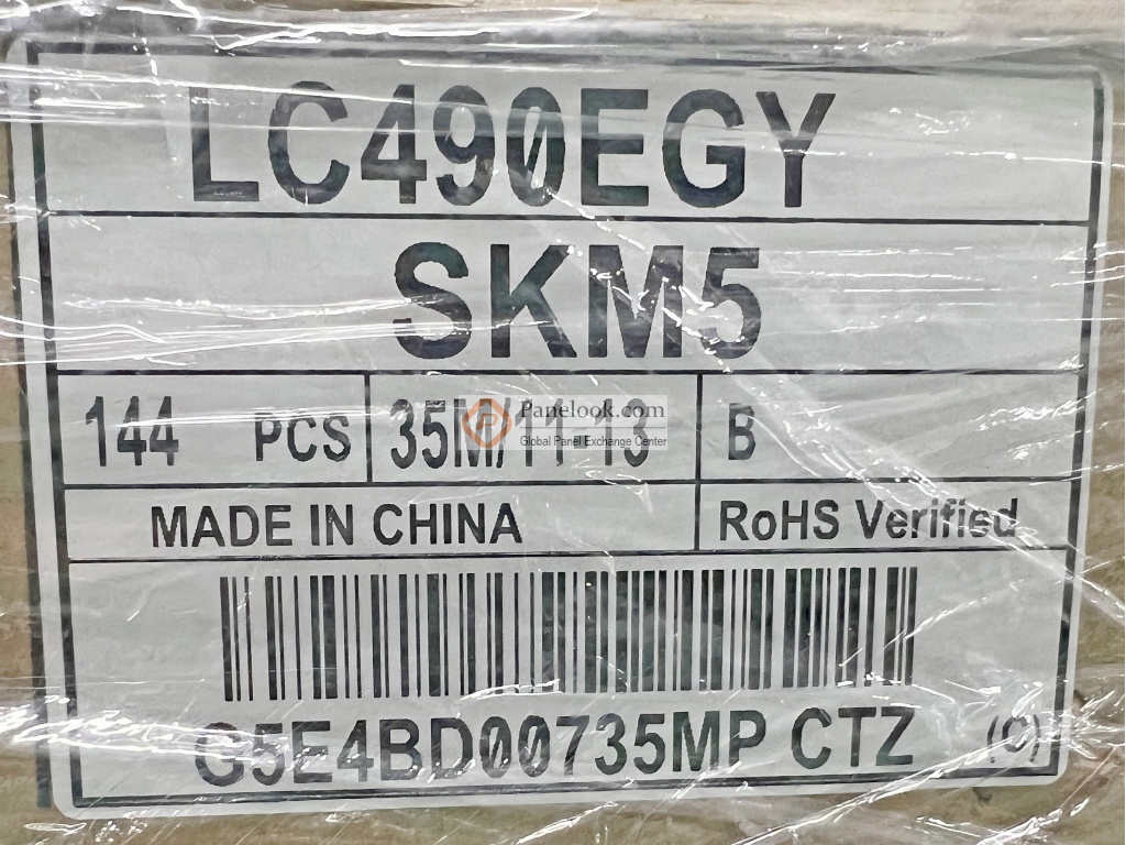 LG Display (LG Display) 推出的LC490EGY-SKM5 (别名: LC490EGY (SK)(M5))是一款采用a-Si TFT-LCD技术的49英寸液晶玻璃产品,它无背光,无触摸。屏库总结它的典型特征为: 10位灰阶,表面雾面, M+ UHD。它的工作温度为 0 ~ 50°C,存储温度为 -20 ~ 65°C。此型号适合应用于电视。本产品已邦定6 source chips驱动IC。根据屏库掌握的情报此产品于2023年Q2量产,当前生产状态为已停产。目前LC490EGY-SKM5在屏库上有3条现货信息、1家供应商信息,交易氛围清淡。屏库于2024年05月22日对此型号首次建立参数,并于2025年06月12日对参数进行了最后更新。根据LG Display (LG Display)于2023年2月2日发布的版本号为Ver1.0的产品规格书,LC490EGY-SKM5显示分辨率为3840(3)×2160 (UHD),宽高比为16:9 (宽:高),像素采用RGBW垂直条状排列。它的显示区域尺寸为1073.78×604 (宽×高) mm,外观尺寸为1085.5(宽)×617.7(高)×1.3(厚) mm,表面处理为雾面 (Haze 3%),Hard coating (2H),产品净重2.00Kgs (Typ.),采用了0.50+0.50 mm的玻璃基板。本产品无背光。LC490EGY-SKM5采用了V-by-One 8 lane信号接口,总共51 pins,采用端子连接,驱屏电压为12.0V (Typ.)。它的典型垂直刷新率Fv为60Hz。如果开发新产品想采用LC490EGY-SKM5液晶玻璃,屏库®建议您向LG Display (LG Display)或其代理商了解关于LC490EGY-SKM5的最新的生产状态信息和技术信息。屏库®上所显示的面板参数均由屏库电子工程师依据规格书录入,已尽力减少错误,但不能保证参数的完全正确。请以规格书为准!