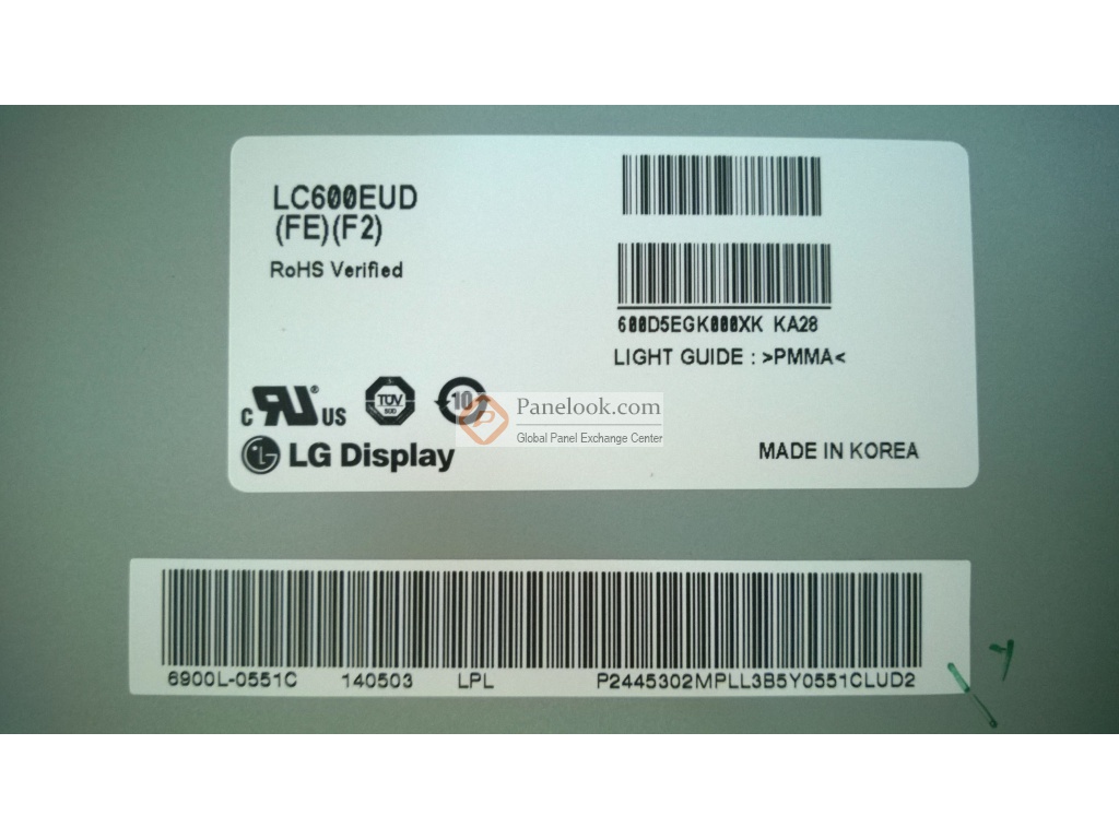 1920(RGB)×1080 (FHD),宽高比为16:9 (宽:高),像素采用RGB垂直条状排列。它的显示区域尺寸为1319.04(宽)×741.96(高) mm,外观尺寸为1346(宽)×769.3(高) mm,可视尺寸为1323.0(宽)×746.0(高) mm,表面处理为雾面 (Haze 1%),Hard coating (2H),产品净重19.5/21.5Kgs (Typ./Max.)。背光方面此产品采用了WLED发光的侧入式光源,光源的使用寿命为30K小时,含LED驱动。LC600EUD-FEF2采用了LVDS (4 ch, 8/10-bit)信号接口,总共92 pins,采用端子连接,驱屏电压为12.0V (Typ.)。它的典型垂直刷新率Fv为120Hz+120Hz。屏库上标注的生产状态仅供参考,不应作为用户的决策依据。屏库®上所显示的面板参数均由屏库电子工程师依据规格书录入,已尽力减少错误,但不能保证参数的完全正确。请以规格书为准!如果开发新产品想采用此液晶模组,关于LC600EUD-FEF2的最新的生产状态信息和技术信息,屏库®建议您咨询LG Display (LG Display)。