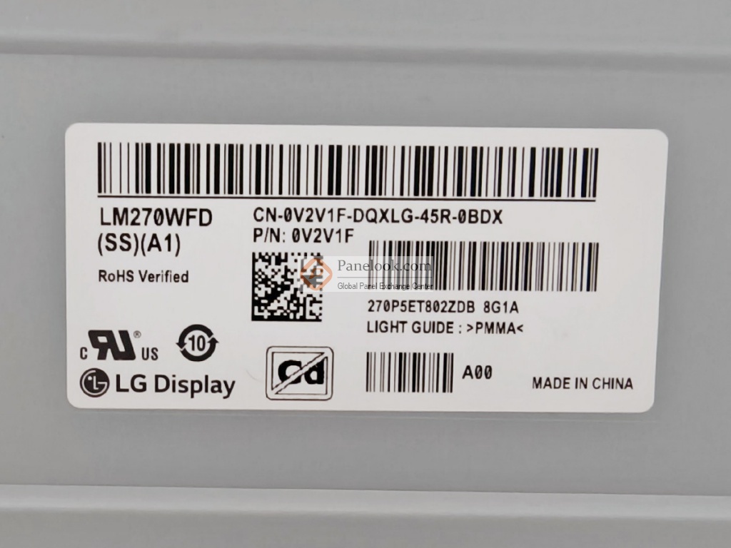 LG Display (LG Display) 推出的LM270WFD-SSA1 (别名: LM270WFD (SS)(A1))是一款采用a-Si TFT-LCD技术的27.0英寸液晶模组产品,它装配有WLED背光,无背光驱动,无触摸。屏库总结它的典型特征为: 4边无边框,白光LED背光,表面雾面, DP/N:0V2V1F。它的工作温度为 0 ~ 50°C,存储温度为 -20 ~ 60°C。此型号适合应用于电脑显示器。当前生产状态为已停产。目前LM270WFD-SSA1在屏库上有2条现货信息、5家供应商信息,交易氛围活跃。屏库于2024年07月08日对此型号首次建立参数,并于2025年12月26日对参数进行了最后更新。LM270WFD-SSA1显示分辨率为1920(RGB)×1080 (FHD),宽高比为16:9 (宽:高),像素采用RGB垂直条状排列。它的显示区域尺寸为597.888×336.312 (宽×高) mm,外观尺寸为607.1(宽)×350.6(高) mm,表面处理为雾面 (Haze 25%),Hard coating (3H),产品净重2.59Kgs (Typ.)。背光方面此产品采用了WLED发光的侧入式光源(底部),不含背光驱动。它的典型垂直刷新率Fv为100Hz。如果开发新产品想采用LM270WFD-SSA1液晶模组,屏库®建议您向LG Display (LG Display)或其代理商了解关于LM270WFD-SSA1的最新的生产状态信息和技术信息。此型号的参数并非摘录自规格书,仅做参考,请慎重使用!屏库上标注的生产状态仅供参考,不应作为用户的决策依据。