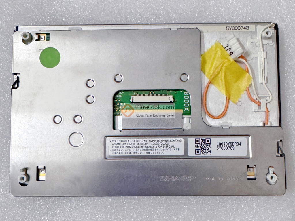 LQ070Y5DR04是日本夏普株式会社 (夏普,Sharp) 推出的一款采用a-Si TFT-LCD技术的7.0英寸液晶模组产品,它装配有CCFL背光,无背光驱动,无触摸。根据夏普 (Sharp)于2004年1月23日发布的版本号为LCY-03039C的产品规格书,LQ070Y5DR04显示分辨率为800(RGB)×480 (WVGA),宽高比为15:9 (宽:高),像素采用RGB垂直条状排列。它的显示区域尺寸为152.4×91.44 (宽×高) mm,可视尺寸为157.6×96.75 (宽×高) mm,外观尺寸为165×105.5 (宽×高)×15.3(厚) mm,表面处理为雾面,抗反射处理,产品净重240g (Typ.)。背光方面此产品采用了1 pcs CCFL发光的侧入式光源,光源的使用寿命为10K小时,不含背光驱动。LQ070Y5DR04采用了Parallel RGB (1 ch, 6-bit)信号接口,总共40 pins,采用端子连接,驱屏电压为3.3V (Typ.)。它的典型垂直刷新率Fv为60Hz。如果开发新产品想采用LQ070Y5DR04液晶模组,屏库®建议您向夏普 (Sharp)或其代理商了解关于LQ070Y5DR04的最新的生产状态信息和技术信息。屏库®上所显示的面板参数均由屏库电子工程师依据规格书录入,已尽力减少错误,但不能保证参数的完全正确。请以规格书为准!根据屏库掌握的情报此产品于2003年Q2量产,当前生产状态为已停产。目前LQ070Y5DR04在屏库上有0条现货信息、1家供应商信息,交易氛围清淡。屏库于2012年06月11日对此型号首次建立参数,并于2026年02月06日对参数进行了最后更新。它的工作温度为 -30 ~ 85°C,存储温度为 -40 ~ 85°C,耐振动性为2.9G (28.4 m/s²)。基于它宽温,3G抗震,180度翻转显示,表面雾面等特征,此型号推荐使用于车载显示,数码相框,便携式DVD。