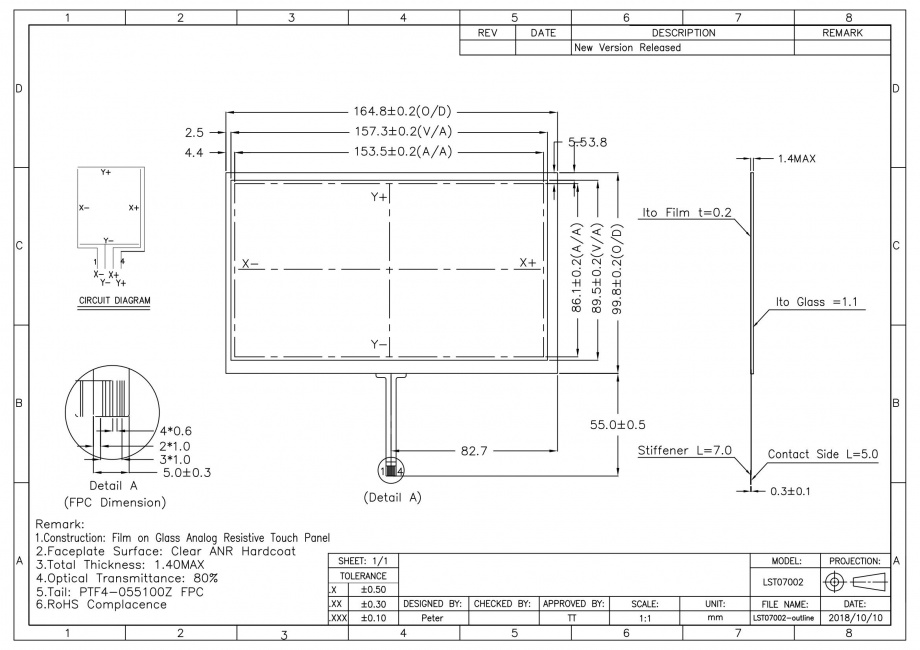1.1 General: Analog Resistive touch screen is laminated by ITO film to ITO glass.