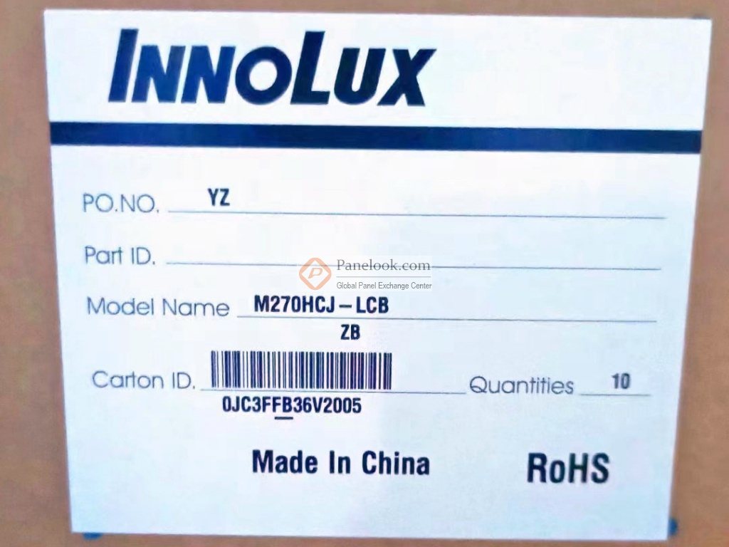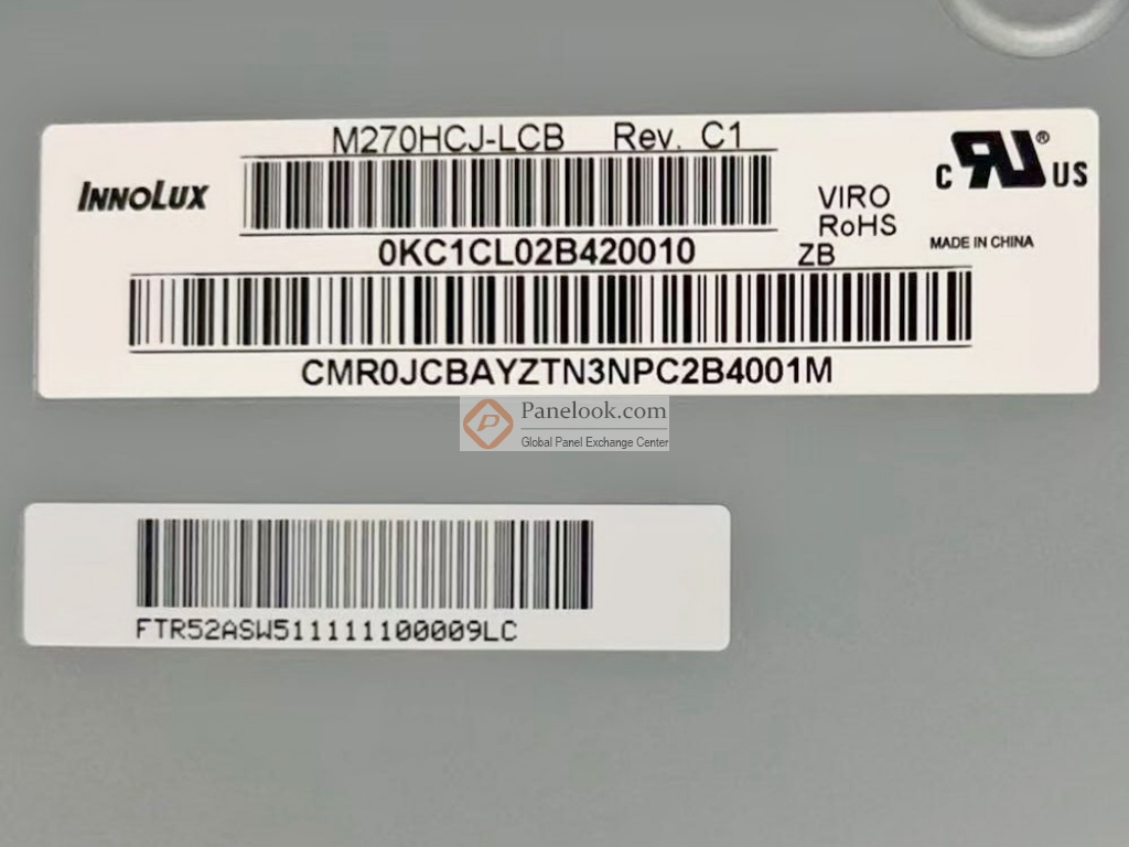 M270HCJ-LCB是 群创 (Innolux)推出的一款 27.0吋a-Si TFT-LCD液晶模组产品,它装配有WLED背光,无背光驱动,无触摸。此产品工作温度为 0 ~ 50°C,存储温度为 -20 ~ 60°C,耐振动性为1.5G (14.7 m/s²)。它的典型特征屏库总结为: sRGB,3边无边框,白光LED背光,端子倒装,表面雾面, 3-sides boderless, ES8.0 TCO 9.0, LBL。基于它的特征屏库推荐此型号应用于 电脑显示器等产品。根据屏库掌握的情报此产品于2022年Q3量产,当前生产状态为量产中。目前此型号在屏库上有6条现货信息、8家供应商信息,交易氛围十分活跃。屏库于2022年11月15日对此型号首次建立参数,并于2026年01月28日对参数进行了最后更新。根据群创 (Innolux)于2022年6月9日发布的版本号为Ver1.1的产品规格书,M270HCJ-LCB显示分辨率为 1920(RGB)×1080 (FHD),宽高比为16:9 (宽:高),像素采用RGB垂直条状排列。它的显示区域尺寸为597.888(宽)×336.312(高) mm,外观尺寸为607.13(宽)×354.1(高)×13.26(厚) mm,表面处理为雾面 (Haze 25%),Hard coating (3H),产品净重2.90/3.05Kgs (Typ./Max.)。背光方面此产品采用了4 strings WLED发光的侧入式光源,光源的使用寿命为30K小时,不含背光驱动。M270HCJ-LCB采用了LVDS (2 ch, 8-bit)信号接口,总共30 pins,采用端子连接,驱屏电压为5.0V (Typ.)。它的典型垂直刷新率Fv为75Hz。屏库上标注的生产状态仅供参考,不应作为用户的决策依据。屏库®上所显示的面板参数均由屏库电子工程师依据规格书录入,已尽力减少错误,但不能保证参数的完全正确。请以规格书为准!如果开发新产品想采用此液晶模组,关于M270HCJ-LCB的最新的生产状态信息和技术信息,屏库®建议您咨询群创 (Innolux)。