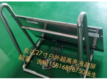产品优点:1,采用铝型材模具结构加超高亮LED背光组件,实现标准化外形结构,氧化处理十年不褪色,高强物理散热,加上LED品牌灯珠,高亮度,低功耗,品质更有保障。2,采用世界液晶优秀品牌LG.AUO商用面板与工业面板,画质更弦丽,更有超高耐温性,户外应用更放心,品质更稳定。3,自动亮度调节小板,白天光线最强时亮度最大,晚上自动降低亮度,减少七成功率,使产品更节能环保。4.增加选配手动亮度调节功能,可手动设置最大亮度。