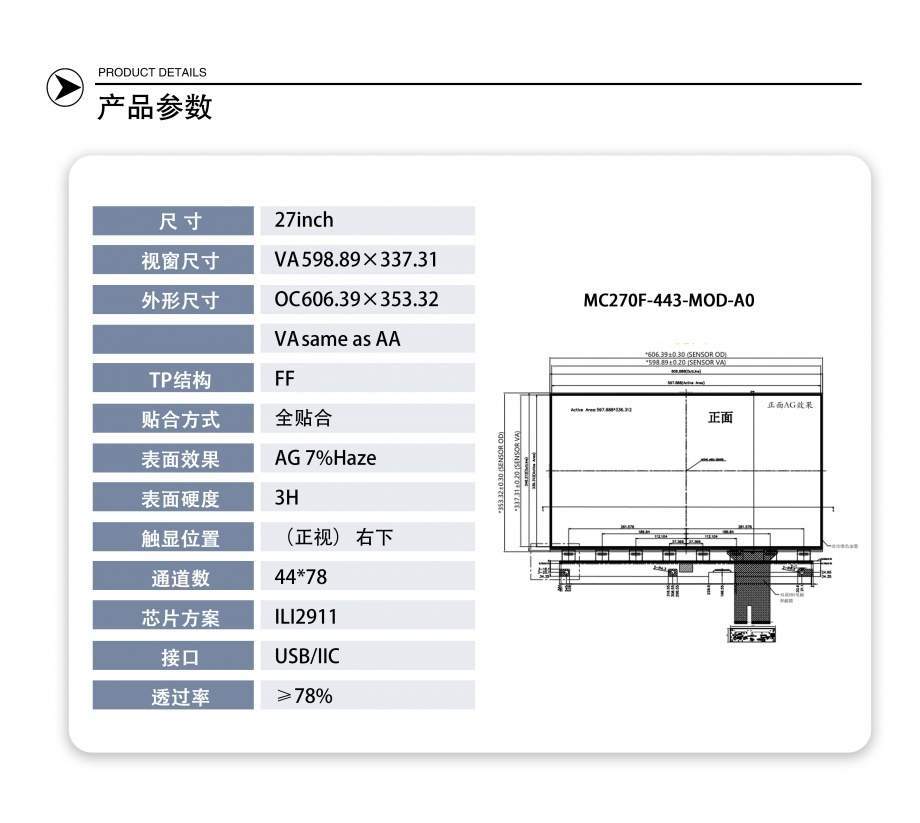 | 关键描述: | 27寸, FF结构, 超轻超薄, 无玻璃盖板, 媲美in-cell |