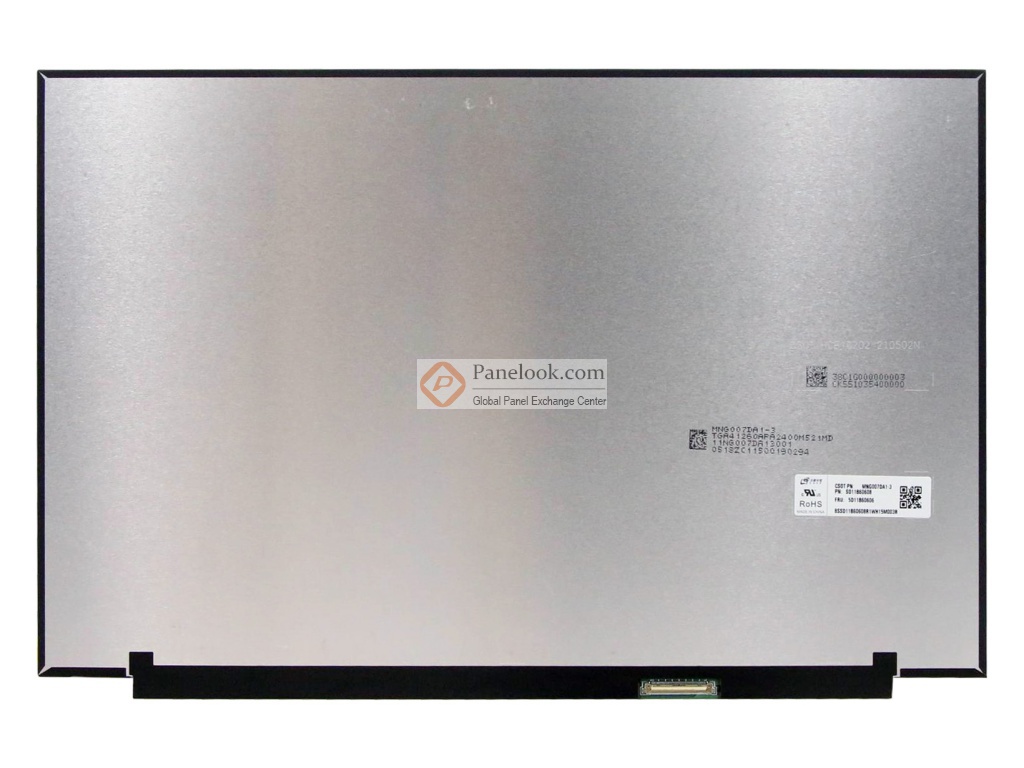 MNG007DA1-3是华星光电 (CSOT)推出的一款16.0吋LTPS TFT-LCD液晶模组产品,它装配有WLED背光,含LED驱动背光驱动,无触摸。此产品工作温度为 0 ~ 50°C,存储温度为 -20 ~ 60°C。它的典型特征屏库总结为: sRGB,白光LED背光,含LED驱动器,端子倒装,表面雾面, Lenovo PN:SD11B60608, FRU:5D11B60606。基于它的特征屏库推荐此型号应用于笔记本等产品。根据屏库掌握的情报此产品于2020年Q4量产,当前生产状态为量产中。目前此型号在屏库上有3条现货信息、2家供应商信息,交易氛围清淡。屏库于2021年12月14日对此型号首次建立参数,并于2025年12月09日对参数进行了最后更新。根据华星光电 (CSOT)于2020年9月9日发布的版本号为Ver.V01的产品规格书,MNG007DA1-3显示分辨率为2560(RGB)×1600 (WQXGA),宽高比为16:10 (宽:高),像素采用RGB垂直条状排列。它的显示区域尺寸为344.678(宽)×215.424(高) mm,外观尺寸为349.68(宽)×224.22(高)×2.55(厚) mm,表面处理为雾面,Hard coating (3H),产品净重320g (Max.)外观样式为薄屏 (PCBA平直, 厚度≤3.2mm)。背光方面此产品采用了12S6P WLED发光的侧入式光源,光源的使用寿命为15K小时,含LED驱动。MNG007DA1-3采用了eDP (4 Lanes)信号接口,总共40 pins,采用端子连接,驱屏电压为3.3V (Typ.)。它的典型垂直刷新率Fv为60Hz。屏库上标注的生产状态仅供参考,不应作为用户的决策依据。屏库®上所显示的面板参数均由屏库电子工程师依据规格书录入,已尽力减少错误,但不能保证参数的完全正确。请以规格书为准!如果开发新产品想采用此液晶模组,关于MNG007DA1-3的最新的生产状态信息和技术信息,屏库®建议您咨询华星光电 (CSOT)。
