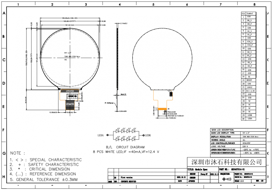 | 产品系列: | 4.0寸 720*RGB*720点阵圆形液晶显示 |