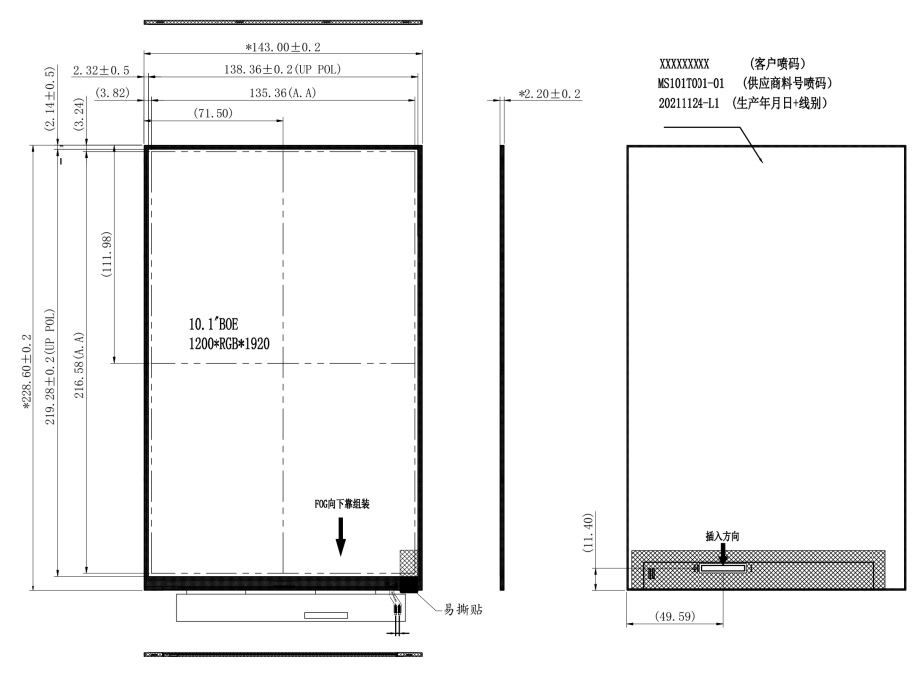 | 关键描述: | 10.1寸 1200RGBX1920液晶显示模组 |