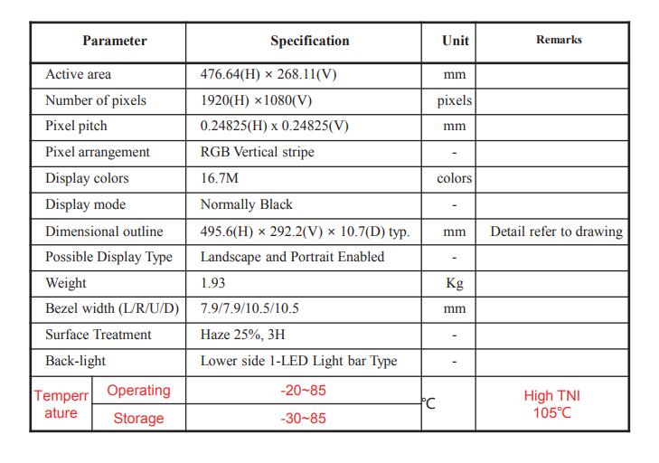 | 显示尺寸: | 476.64 (宽) × 268.11 (高) mm (A.A) |