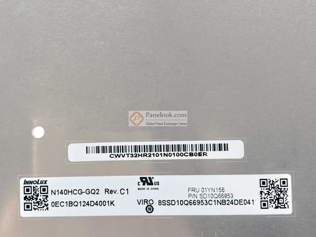 N140HCG-GQ2 (产品代码: CMN14F2)是群创 (Innolux)推出的一款14.0吋a-Si TFT-LCD液晶模组产品,它装配有WLED背光,含LED驱动背光驱动,无触摸。此产品工作温度为 0 ~ 50°C,存储温度为 -20 ~ 60°C,耐振动性为1.5G (14.7 m/s²)。它的典型特征屏库总结为: sRGB,白光LED背光,含LED驱动器,端子倒装,表面雾面, eDP1.4, Lenovo P/N: SD10Q66953 SD10Q67009, FRU: 01YN156 5D10V82344。基于它的特征屏库推荐此型号应用于笔记本工业等产品。根据屏库掌握的情报此产品于2019年Q2量产,当前生产状态为量产中。目前此型号在屏库上有10条现货信息、23家供应商信息,属于目前屏库市场交易的主力型号产品。屏库于2019年09月30日对此型号首次建立参数,并于2026年04月10日对参数进行了最后更新。根据群创 (Innolux)于2019年1月11日发布的版本号为Rev.C1_Ver3.1的产品规格书,N140HCG-GQ2显示分辨率为1920(RGB)×1080 (FHD),宽高比为16:9 (宽:高),像素采用RGB垂直条状排列。它的显示区域尺寸为308.851(宽)×173.73(高) mm,外观尺寸为315.01(宽)×185.84(高)×2.4(厚) mm,表面处理为雾面,Hard coating (3H),产品净重205/220g (Typ./Max.)外观样式为薄屏 (PCBA平直, 厚度≤3.2mm)。背光方面此产品采用了10S6P WLED发光的侧入式光源,光源的使用寿命为15K小时,含LED驱动。N140HCG-GQ2采用了eDP (2 Lanes)信号接口,总共30 pins,采用端子连接,驱屏电压为3.3V (Typ.)。它的典型垂直刷新率Fv为60Hz。屏库上标注的生产状态仅供参考,不应作为用户的决策依据。屏库®上所显示的面板参数均由屏库电子工程师依据规格书录入,已尽力减少错误,但不能保证参数的完全正确。请以规格书为准!如果开发新产品想采用此液晶模组,关于N140HCG-GQ2的最新的生产状态信息和技术信息,屏库®建议您咨询群创 (Innolux)。