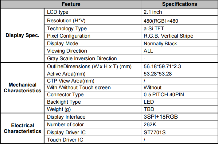 | 关键描述: | 2.1寸 圆形液晶屏 TFT LCD model 480*480分辨率 SPI 接口 |