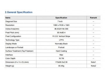 | 关键描述: | 7英寸FHD 液晶显示屏1080X1920 MIPI 接口竖屏液晶显示屏总成带触摸 |