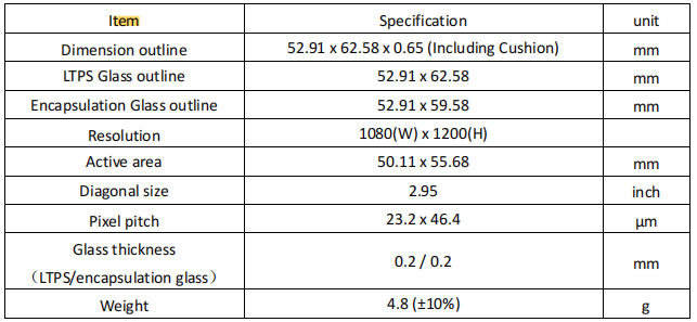 2.95寸 1080RGB x 1200 AMOLED MIPI接口