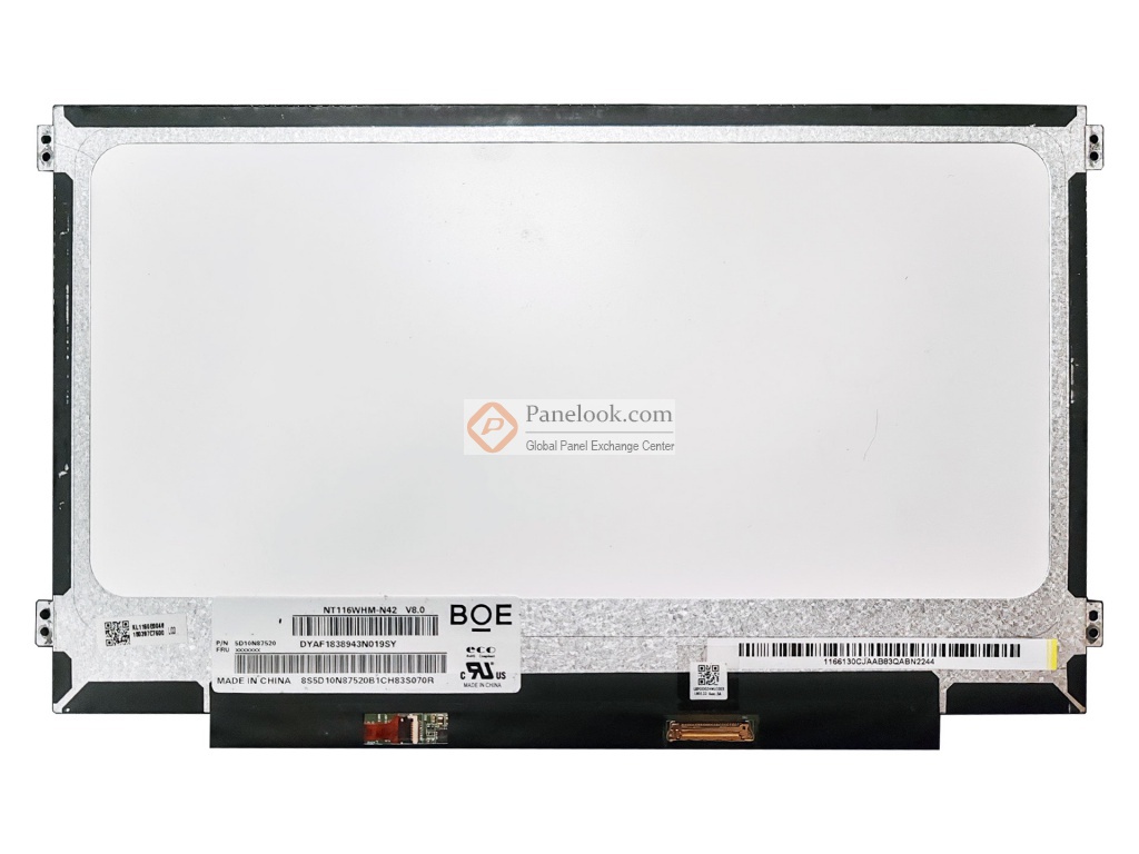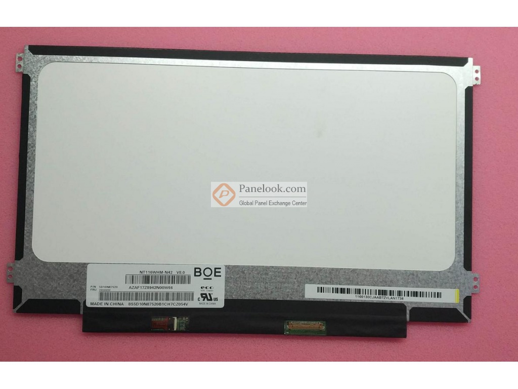 NT116WHM-N42 (产品代码: BOE0731)是京东方 (BOE)推出的一款11.6吋a-Si TFT-LCD液晶模组产品,它装配有WLED背光,含LED驱动背光驱动,无触摸。此产品工作温度为 0 ~ 50°C,存储温度为 -20 ~ 60°C,耐振动性为1.5G (14.7 m/s²)。它的典型特征屏库总结为: 白光LED背光,含LED驱动器,端子倒装,表面雾面。基于它的特征屏库推荐此型号应用于笔记本等产品。根据屏库掌握的情报此产品于2017年Q2量产,当前生产状态为量产中。目前此型号在屏库上有12条现货信息、27家供应商信息,属于目前屏库市场交易的主力型号产品。屏库于2017年09月08日对此型号首次建立参数,并于2025年11月10日对参数进行了最后更新。根据京东方 (BOE)于2017年6月20日发布的版本号为Rev.P2的产品规格书,NT116WHM-N42显示分辨率为1366(RGB)×768 (WXGA),宽高比为16:9 (宽:高),像素采用RGB垂直条状排列。它的显示区域尺寸为256.125(宽)×144(高) mm,外观尺寸为278(宽)×168(高)×3(厚) mm,表面处理为雾面,产品净重210g (Max.)外观样式为薄屏 (PCBA平直, 厚度≤3.2mm)。背光方面此产品采用了8S3P WLED发光的侧入式光源(底部),光源的使用寿命为15K小时,含LED驱动。NT116WHM-N42采用了eDP (1 Lane)信号接口,总共30 pins,采用端子连接,驱屏电压为3.3V (Typ.)。它的典型垂直刷新率Fv为60Hz。屏库上标注的生产状态仅供参考,不应作为用户的决策依据。屏库®上所显示的面板参数均由屏库电子工程师依据规格书录入,已尽力减少错误,但不能保证参数的完全正确。请以规格书为准!如果开发新产品想采用此液晶模组,关于NT116WHM-N42的最新的生产状态信息和技术信息,屏库®建议您咨询京东方 (BOE)。