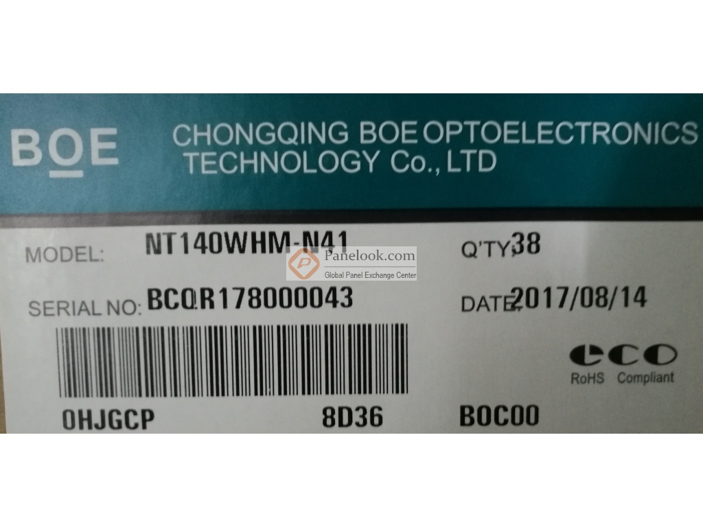 NT140WHM-N41 (别名: D/PN:0C8WJ) (产品代码: BOE070D)是京东方科技集团股份有限公司 ( 京东方,BOE) 推出的一款采用a-Si TFT-LCD技术的 14.0英寸液晶模组产品,它装配有WLED背光,含LED驱动背光驱动,无触摸。根据京东方 (BOE)于2016年12月12日发布的版本号为Rev.P1的产品规格书,NT140WHM-N41显示分辨率为 1366(RGB)×768 (WXGA),宽高比为16:9 (宽:高),像素采用RGB垂直条状排列。它的显示区域尺寸为309.399×173.952 (宽×高) mm,外观尺寸为320.4×205.1 (宽×高)×3(厚) mm,表面处理为雾面,产品净重275g (Max.)外观样式为薄屏 (PCBA平直, 厚度≤3.2mm)。背光方面此产品采用了9S3P WLED发光的侧入式光源,光源的使用寿命为15K小时,含LED驱动。NT140WHM-N41采用了eDP (1 Lane)信号接口,总共30 pins,采用端子连接,驱屏电压为3.3V (Typ.)。它的典型垂直刷新率Fv为60Hz。如果开发新产品想采用NT140WHM-N41液晶模组,屏库®建议您向京东方 (BOE)或其代理商了解关于NT140WHM-N41的最新的生产状态信息和技术信息。屏库®上所显示的面板参数均由屏库电子工程师依据规格书录入,已尽力减少错误,但不能保证参数的完全正确。请以规格书为准!根据屏库掌握的情报此产品于2016年Q1量产,当前生产状态为量产中。目前NT140WHM-N41在屏库上有19条现货信息、36家供应商信息,属于目前屏库市场交易的主力型号产品。屏库于2016年05月30日对此型号首次建立参数,并于2025年06月13日对参数进行了最后更新。它的工作温度为 0 ~ 50°C,存储温度为 -20 ~ 60°C,耐振动性为1.5G (14.7 m/s²)。基于它白光LED背光,含LED驱动器,端子倒装,表面雾面, eDP1.2等特征,此型号推荐使用于 笔记本。