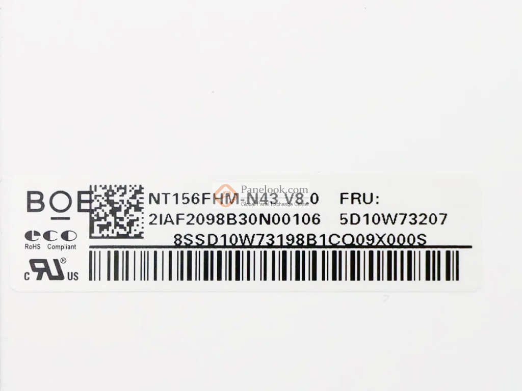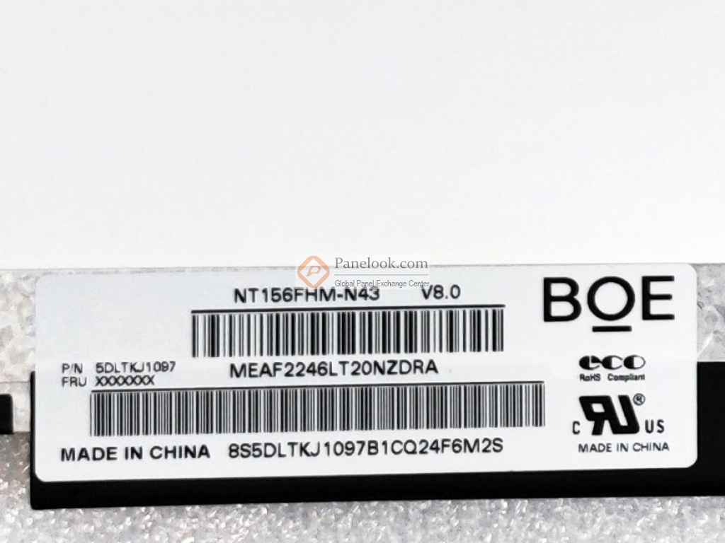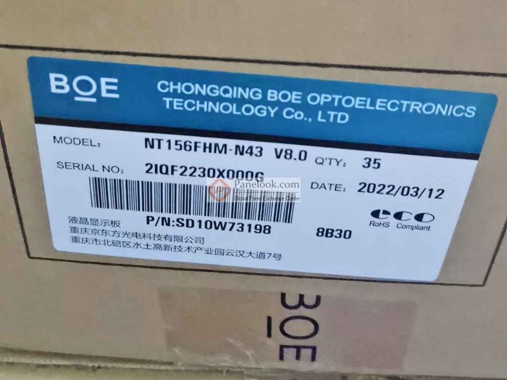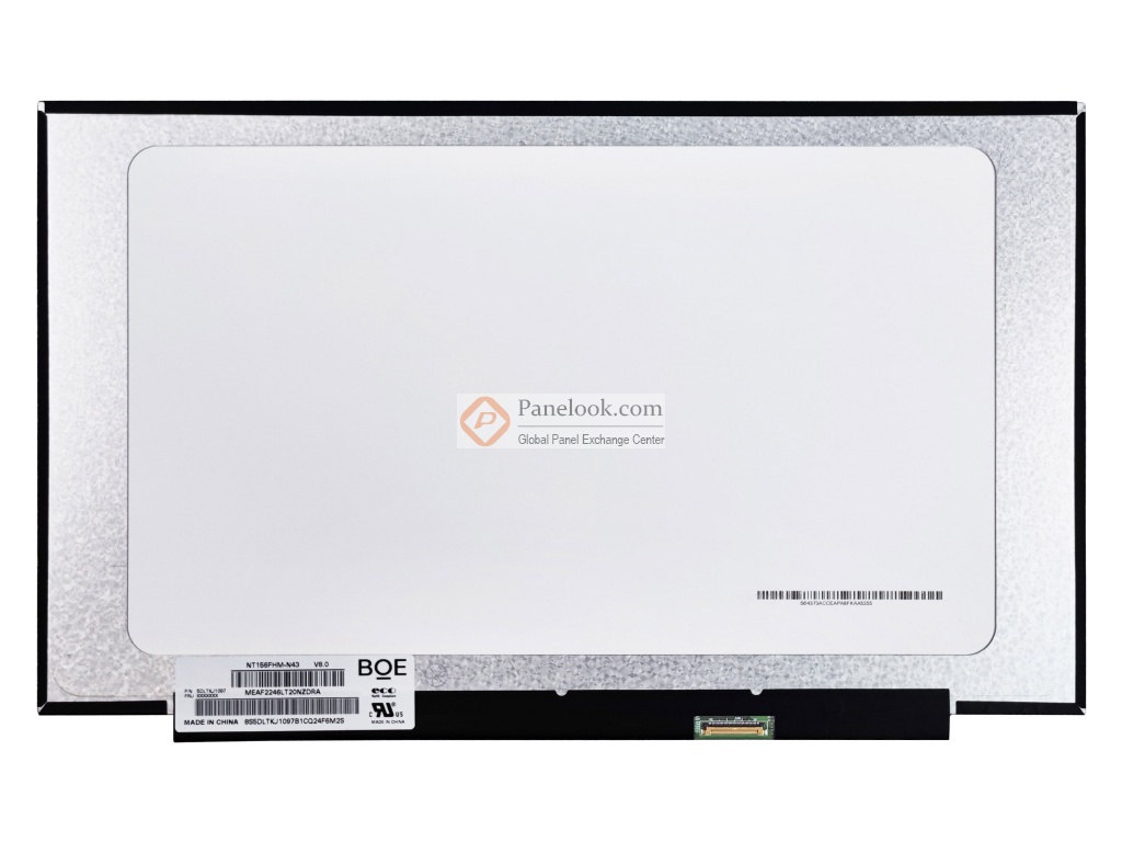NT156FHM-N43 (产品代码: BOE08D5)是京东方 (BOE)推出的一款15.6吋a-Si TFT-LCD液晶模组产品,它装配有WLED背光,含LED驱动背光驱动,无触摸。此产品工作温度为 0 ~ 50°C,存储温度为 -20 ~ 60°C,耐振动性为1.5G (14.7 m/s²)。它的典型特征屏库总结为: 白光LED背光,含LED驱动器,端子倒装,表面雾面,AMD FreeSync, eDP1.2, Free SYNC。基于它的特征屏库推荐此型号应用于笔记本等产品。根据屏库掌握的情报此产品于2019年Q4量产,当前生产状态为量产中。目前此型号在屏库上有15条现货信息、15家供应商信息,属于目前屏库市场交易的主力型号产品。屏库于2020年11月10日对此型号首次建立参数,并于2026年03月05日对参数进行了最后更新。根据京东方 (BOE)于2019年9月19日发布的版本号为V8.0_Rev.P1的产品规格书,NT156FHM-N43显示分辨率为1920(RGB)×1080 (FHD),宽高比为16:9 (宽:高),像素采用RGB垂直条状排列。它的显示区域尺寸为344.16(宽)×193.59(高) mm,外观尺寸为350.66(宽)×214.75(高)×3.2(厚) mm,表面处理为雾面,Hard coating (3H),产品净重360g (Max.)外观样式为薄屏 (PCBA平直, 厚度≤3.2mm)。背光方面此产品采用了9S4P WLED发光的侧入式光源,光源的使用寿命为15K小时,含LED驱动。NT156FHM-N43采用了eDP (2 Lanes)信号接口,总共30 pins,采用端子连接,驱屏电压为3.3V (Typ.)。它的典型垂直刷新率Fv为60Hz。屏库上标注的生产状态仅供参考,不应作为用户的决策依据。屏库®上所显示的面板参数均由屏库电子工程师依据规格书录入,已尽力减少错误,但不能保证参数的完全正确。请以规格书为准!如果开发新产品想采用此液晶模组,关于NT156FHM-N43的最新的生产状态信息和技术信息,屏库®建议您咨询京东方 (BOE)。