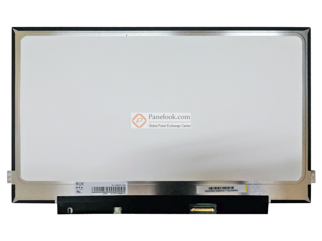 NV116WHM-N43 (产品代码: BOE0797)是 京东方 (BOE)推出的一款 11.6吋a-Si TFT-LCD液晶模组产品,它装配有WLED背光,含LED驱动背光驱动,无触摸。此产品工作温度为 0 ~ 50°C,存储温度为 -20 ~ 60°C。它的典型特征屏库总结为: 白光LED背光,含LED驱动器,端子倒装, eDP1.2。基于它的特征屏库推荐此型号应用于 笔记本等产品。根据屏库掌握的情报此产品于2018年Q1量产,当前生产状态为量产中。目前此型号在屏库上有9条现货信息、21家供应商信息,属于目前屏库市场交易的主力型号产品。屏库于2018年05月03日对此型号首次建立参数,并于2025年09月15日对参数进行了最后更新。根据京东方 (BOE)于2017年10月27日发布的版本号为Rev.P1的产品规格书,NV116WHM-N43显示分辨率为 1366(RGB)×768 (WXGA),宽高比为16:9 (宽:高),像素采用RGB垂直条状排列。它的显示区域尺寸为256.125(宽)×144(高) mm,外观尺寸为278(宽)×168(高)×3(厚) mm,产品净重195g (Max.)外观样式为薄屏 (PCBA平直, 厚度≤3.2mm)。背光方面此产品采用了9S4P WLED发光的侧入式光源(底部),光源的使用寿命为15K小时,含LED驱动。NV116WHM-N43采用了eDP (2 Lanes)信号接口,总共30 pins,采用端子连接,驱屏电压为3.3V (Typ.)。它的典型垂直刷新率Fv为60Hz。屏库上标注的生产状态仅供参考,不应作为用户的决策依据。屏库®上所显示的面板参数均由屏库电子工程师依据规格书录入,已尽力减少错误,但不能保证参数的完全正确。请以规格书为准!如果开发新产品想采用此液晶模组,关于NV116WHM-N43的最新的生产状态信息和技术信息,屏库®建议您咨询京东方 (BOE)。