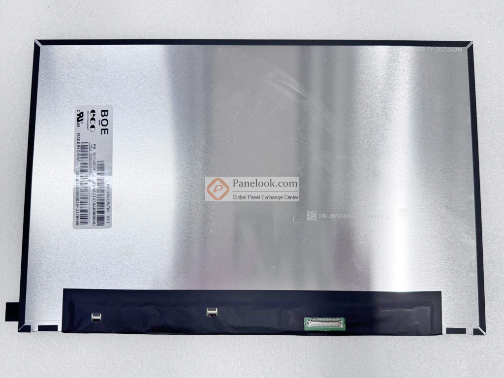 京东方 (BOE) 推出的NV133WUM-T01 (产品代码: BOE0A84)是一款采用a-Si TFT-LCD技术的13.3英寸液晶模组产品,它装配有WLED背光,含LED驱动背光驱动,On-Cell Touch。屏库总结它的典型特征为: sRGB,带触摸屏,白光LED背光,含LED驱动器,端子倒装,表面镜面, eDP1.3, PSR1, BIST。它的工作温度为 0 ~ 50°C,存储温度为 -20 ~ 60°C,耐振动性为1.5G (14.7 m/s²)。此型号适合应用于笔记本。根据屏库掌握的情报此产品于2022年Q2量产,当前生产状态为量产中。目前NV133WUM-T01在屏库上有9条现货信息、9家供应商信息,交易氛围十分活跃。屏库于2023年02月03日对此型号首次建立参数,并于2026年03月21日对参数进行了最后更新。根据京东方 (BOE)于2022年1月26日发布的版本号为V3.0_Rev.O的产品规格书,NV133WUM-T01显示分辨率为1920(RGB)×1200 (WUXGA),宽高比为16:10 (宽:高),像素采用RGB垂直条状排列。它的显示区域尺寸为286.042×178.776 (宽×高) mm,外观尺寸为291.04(宽)×189.33(高)×4.5(厚) mm,表面处理为镜面 (Haze 0%),Hard coating (3H),产品净重240g (Max.)外观样式为薄屏 (PCBA弯折, 厚度≤3.0mm)。背光方面此产品采用了9S5P WLED发光的侧入式光源(底部),光源的使用寿命为15K小时,含LED驱动。NV133WUM-T01采用了eDP (2 Lanes)信号接口,总共40 pins,采用端子连接,驱屏电压为3.3V (Typ.)。它的典型垂直刷新率Fv为60Hz。如果开发新产品想采用NV133WUM-T01液晶模组,屏库®建议您向京东方 (BOE)或其代理商了解关于NV133WUM-T01的最新的生产状态信息和技术信息。屏库®上所显示的面板参数均由屏库电子工程师依据规格书录入,已尽力减少错误,但不能保证参数的完全正确。请以规格书为准!
