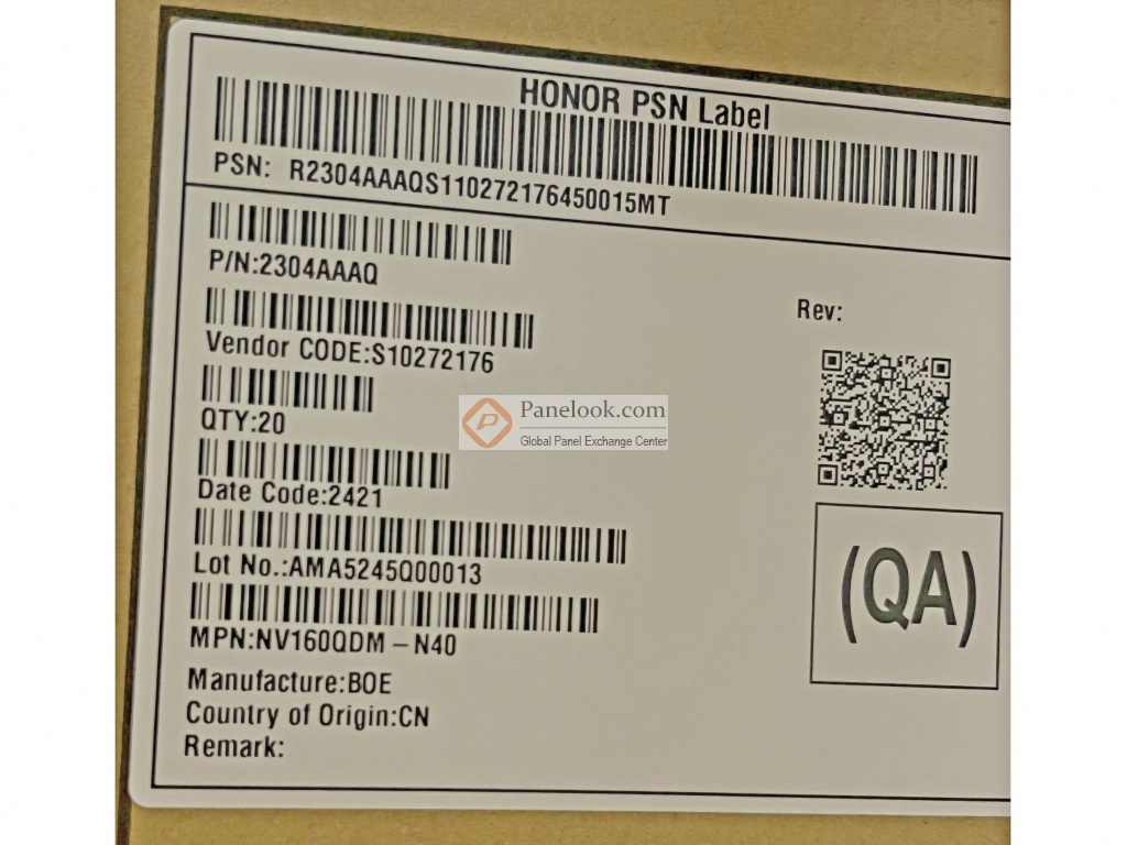 笔记本等产品。根据屏库掌握的情报此产品于2024年Q3量产,当前生产状态为量产中。目前此型号在屏库上有2条现货信息、0家供应商信息,交易氛围清淡。屏库于2025年05月15日对此型号首次建立参数,并于2026年02月05日对参数进行了最后更新。根据京东方 (BOE)于2024年4月23日发布的版本号为5940_Rev.P1的产品规格书,NV160QDM-N40显示分辨率为