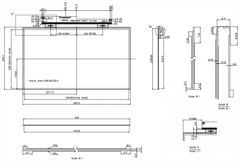 | Active Area(mm) | 413.4mm*233.4mm |