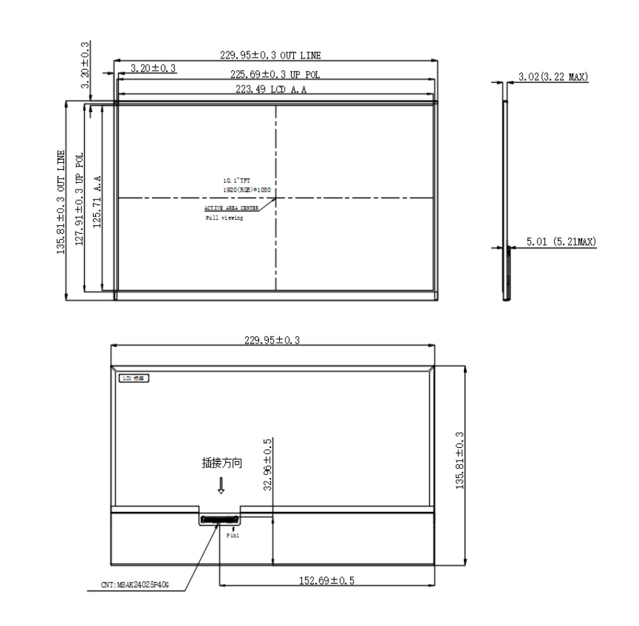 | 显示尺寸: | 223.48 (宽) × 125.71 (高) mm (A.A) |