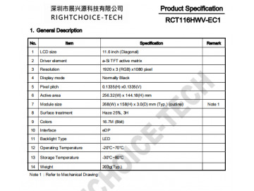 | RCT116HWV-EC1_V2_Preliminary Specifications_2022-3-21(1).pdf | 2.1 M | 请联系我们索取 |