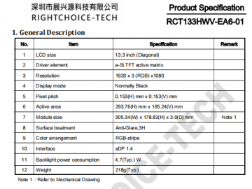 | 关键描述: | 13.3英寸 1920*3(RGB)*1080 1000亮度 eDP接口 30PIN 彩色TFT液晶屏, 高亮液晶屏, 阳光下可视液晶屏, IPS液晶屏, 用于充电桩 |