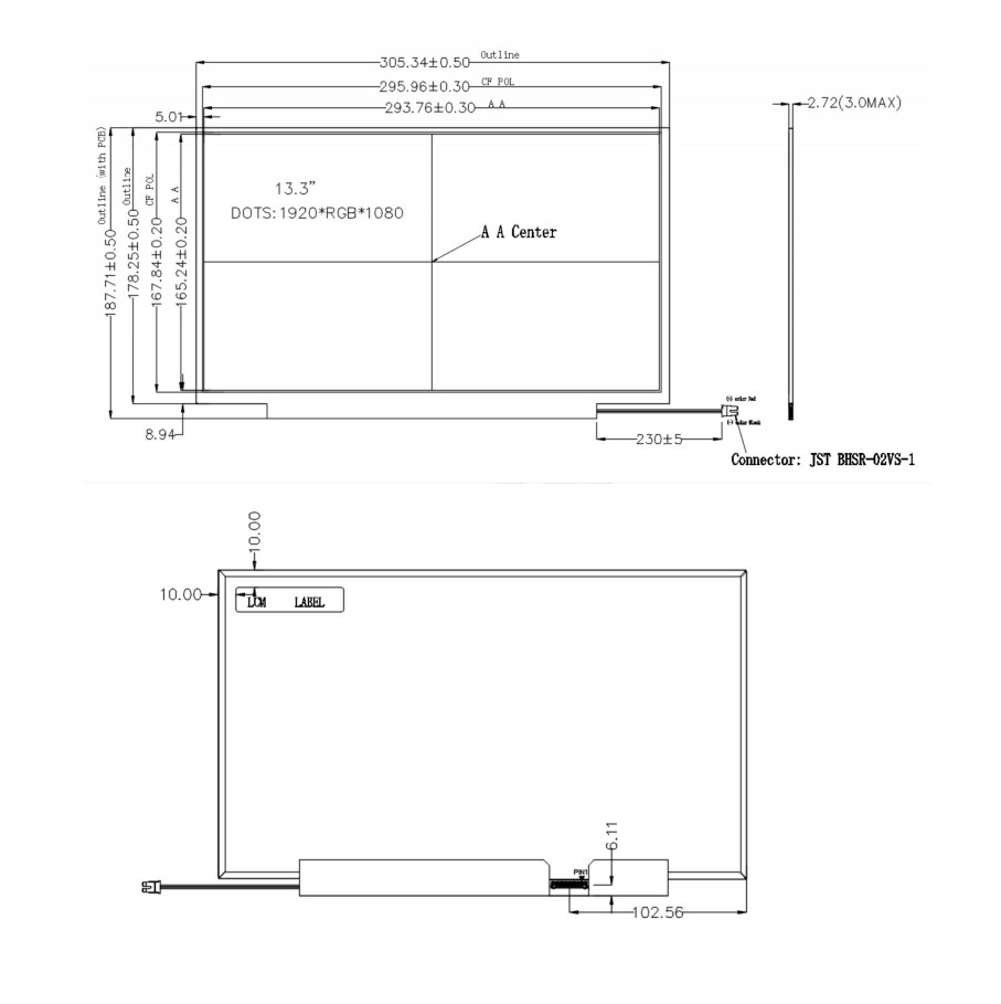 | 显示尺寸: | 293.76 (宽) × 165.24 (高) mm (A.A) |