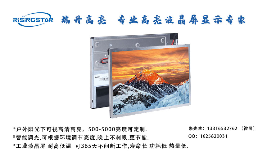 深圳瑞升户外高亮液晶屏有限公司拥有10多名高级工程师,拥有丰富的高亮屏设计经历和专业的LED驱动设计技术,背光模组结构设计技术,研制了各种亮度的液晶背光模组,并有独特结构的高亮液晶模组,可以匹配7寸-98寸的结构,液晶玻璃可以与三星,LG 友达 群创光电 夏普 华星光电 京东方的cell进行匹配,生产出标准化的高亮液晶屏模组。