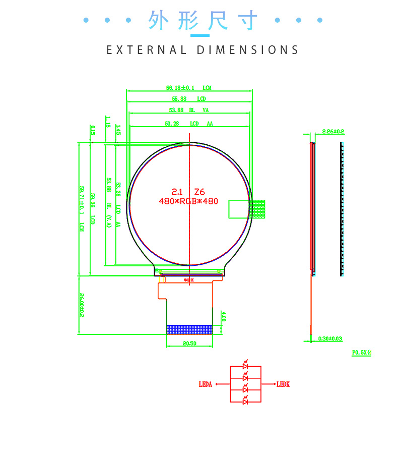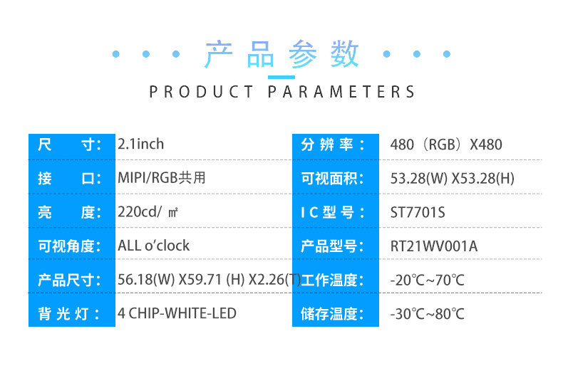 | 关键描述: | 2.1寸圆形480*480 40pin ST7701S 亮度220 全视角智能家居液晶显示屏 |