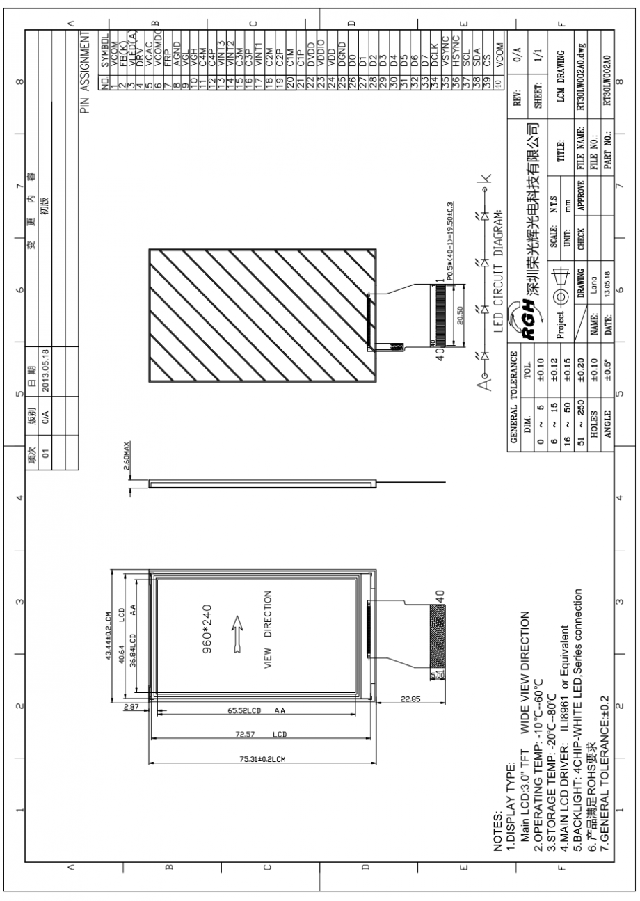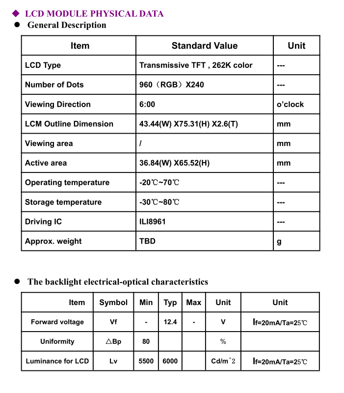 | 关键描述: | 3.0寸960x240, 亮度200, 40pins 8bit RGB接口, ILI8961, LCD液晶显示屏 |