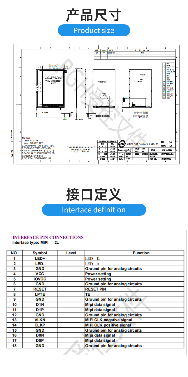 | 关键描述: | 4.0寸, 480*800, 800亮度, 18pin, MIPI 2L接口 , ST7701S |