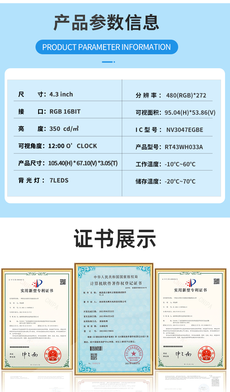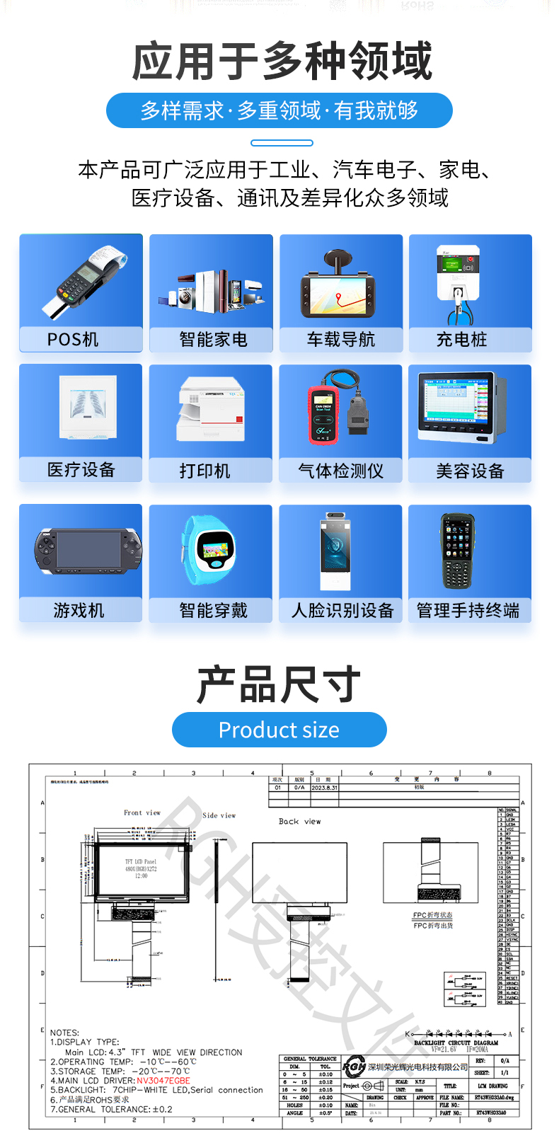 | 关键描述: | 4.3寸液晶门锁显示屏480*272横屏家电LCD屏 |