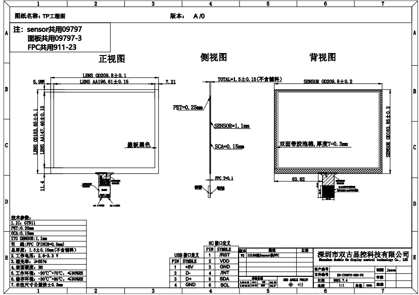 | 关键描述: | 双古显控 9.7寸 电容触摸屏GT911 P+G结构 I2C和USB接口 4:3 可配液晶屏 全贴合 应用于广告、智能平板、车载、智能家居、工控、医疗、商显等 |
