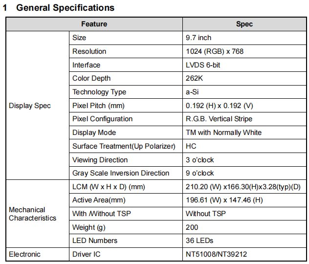 | 显示尺寸: | 196.61 (宽) × 147.46 (高) mm (A.A) |