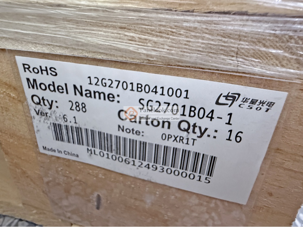 27.0英寸液晶玻璃产品,它无背光,无触摸,已邦定6 source chips驱动IC。根据华星光电 (CSOT)于2023年2月20日发布的版本号为Ver6.1的产品规格书,SG2701B04-1显示分辨率为