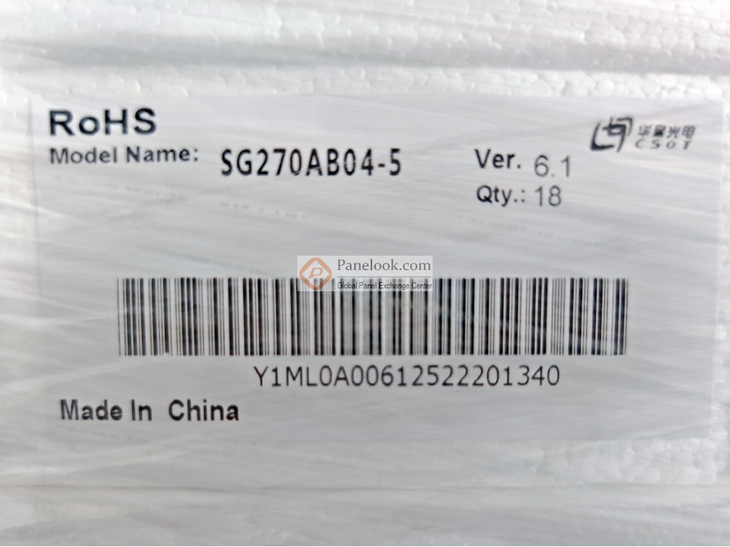 1920(RGB)×1080 (FHD),宽高比为16:9 (宽:高),像素采用RGB垂直条状排列。它的显示区域尺寸为597.888×336.312 (宽×高) mm,外观尺寸为608.88(宽)×348.337(高)×1.2(厚) mm,表面处理为雾面 (Haze 25%),Hard coating (3H),产品净重580g (Typ.),采用了0.40+0.50 mm的玻璃基板。本产品无背光。SG270AB04-5采用了LVDS (2 ch, 8-bit)信号接口,总共30 pins,采用端子连接,驱屏电压为12.0V (Typ.)。它的典型垂直刷新率Fv为144Hz。如果开发新产品想采用SG270AB04-5液晶玻璃,屏库®建议您向华星光电 (CSOT)或其代理商了解关于SG270AB04-5的最新的生产状态信息和技术信息。屏库®上所显示的面板参数均由屏库电子工程师依据规格书录入,已尽力减少错误,但不能保证参数的完全正确。请以规格书为准!