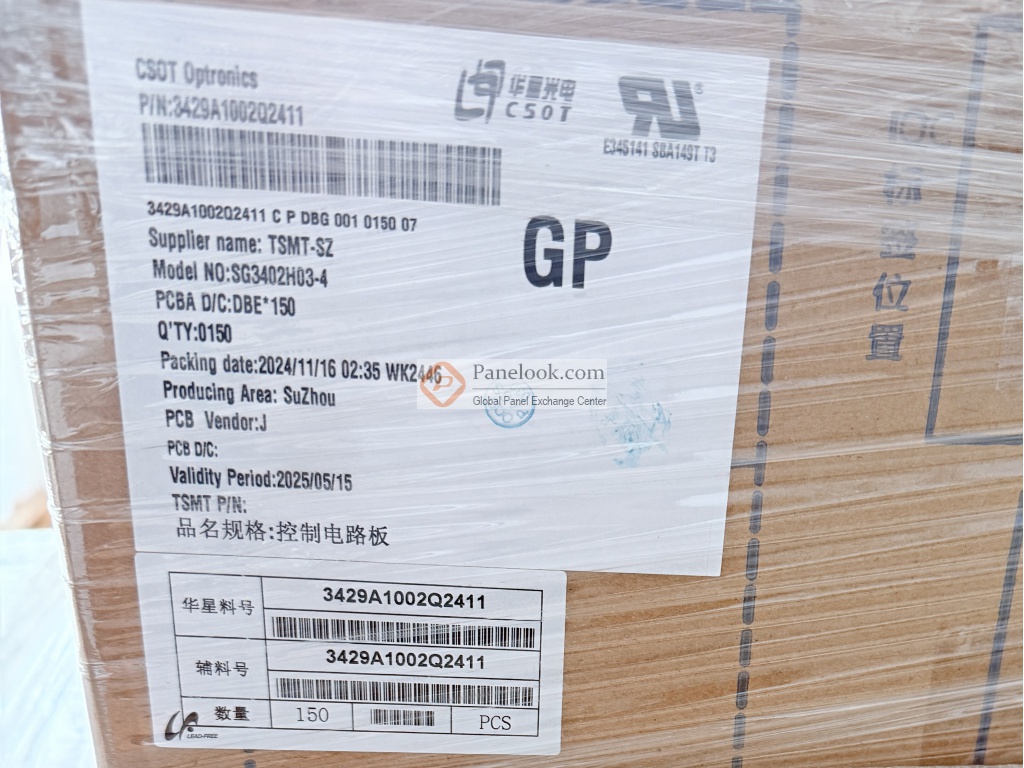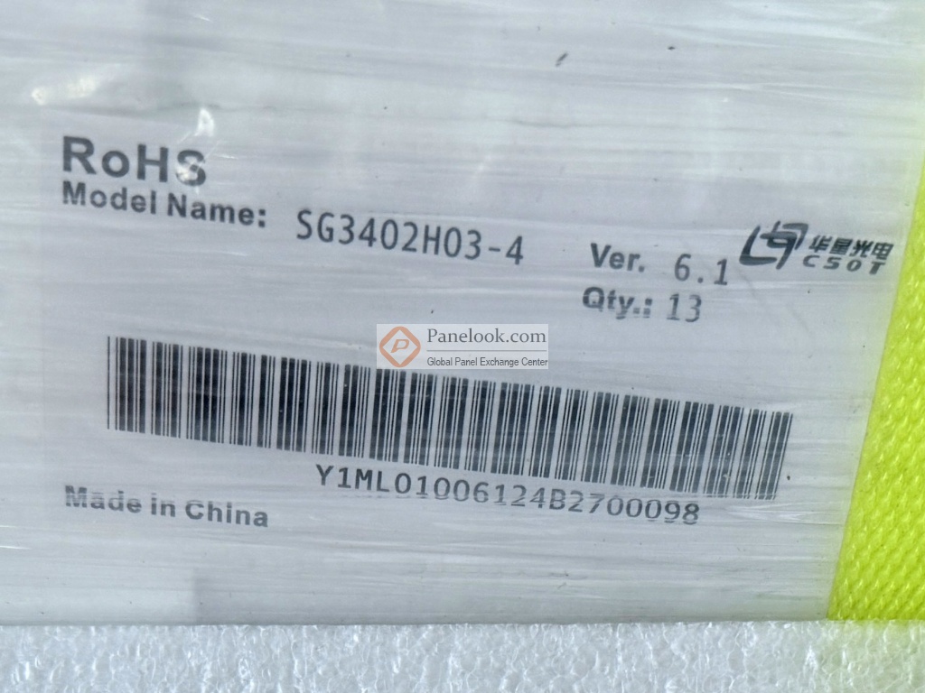 SG3402H03-4 Ver.6.1是华星光电 (CSOT)推出的一款34吋a-Si TFT-LCD液晶玻璃产品,它无背光,无触摸。此产品工作温度为 0 ~ 50°C,存储温度为 -20 ~ 60°C。它的典型特征屏库总结为: sRGB,240Hz,10位灰阶,表面雾面。基于它的特征屏库推荐此型号应用于电脑显示器,游戏等产品。本产品已邦定12 source chips驱动IC。根据屏库掌握的情报此产品于2023年Q2量产,当前生产状态为量产中。目前此型号在屏库上有0条现货信息、1家供应商信息,交易氛围清淡。屏库于2025年02月21日对此型号首次建立参数,并于2026年01月14日对参数进行了最后更新。根据华星光电 (CSOT)于2023年3月17日发布的版本号为Ver6.1的产品规格书,SG3402H03-4 Ver.6.1显示分辨率为3440(RGB)×1440,宽高比为21:9 (宽:高),像素采用RGB垂直条状排列。它的显示区域尺寸为797.22(宽)×333.72(高) mm,外观尺寸为809.92(宽)×347.77(高)×1.06(厚) mm,表面处理为雾面 (Haze 25%),Hard coating (3H),产品净重720g (Typ.),采用了0.38+0.38 mm的玻璃基板。本产品无背光。SG3402H03-4 Ver.6.1采用了eDP (8 Lanes)信号接口,总共51 pins,采用端子连接,驱屏电压为12.0V (Typ.)。它的典型垂直刷新率Fv为240Hz。屏库上标注的生产状态仅供参考,不应作为用户的决策依据。屏库®上所显示的面板参数均由屏库电子工程师依据规格书录入,已尽力减少错误,但不能保证参数的完全正确。请以规格书为准!如果开发新产品想采用此液晶玻璃,关于SG3402H03-4 Ver.6.1的最新的生产状态信息和技术信息,屏库®建议您咨询华星光电 (CSOT)。