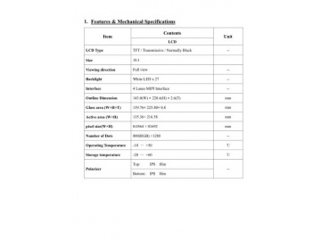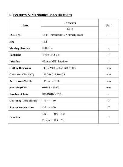 10.1寸TFT液晶显示屏 800*1280 IPS液晶屏 250亮度 31PINS MIPI 平板显示/人屏识别显示屏/商业白板显示屏 |