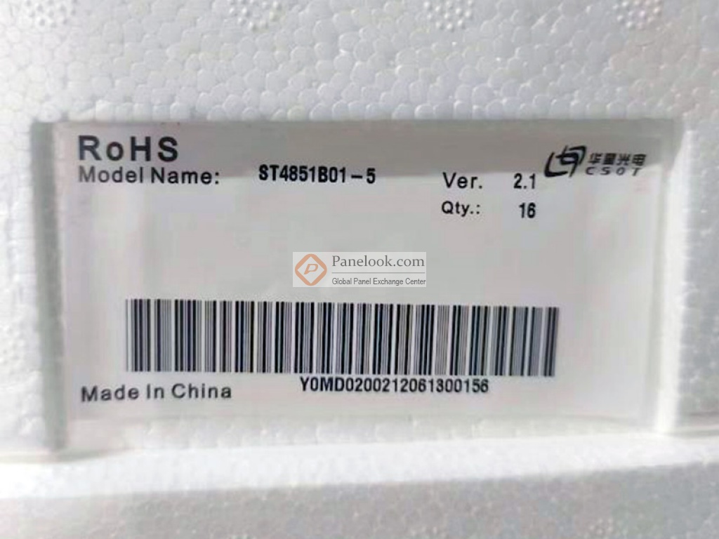 ST4851B01-5是华星光电 (CSOT)推出的一款49吋a-Si TFT-LCD液晶玻璃产品,它无背光,无触摸。此产品工作温度为 0 ~ 50°C,存储温度为 -15 ~ 60°C。它的典型特征屏库总结为: sRGB,表面雾面。基于它的特征屏库推荐此型号应用于电视等产品。本产品已邦定6 source + 3 gate chips驱动IC。根据屏库掌握的情报此产品于2017年Q4量产,当前生产状态为量产中。目前此型号在屏库上有0条现货信息、2家供应商信息,交易氛围清淡。屏库于2018年11月14日对此型号首次建立参数,并于2024年03月11日对参数进行了最后更新。根据华星光电 (CSOT)于2017年9月25日发布的版本号为Ver2.1的产品规格书,ST4851B01-5显示分辨率为1920(RGB)×1080 (FHD),宽高比为16:9 (宽:高),像素采用RGB垂直条状排列。它的显示区域尺寸为1073.78(宽)×604(高) mm,外观尺寸为1084.8(宽)×616.3(高)×1.37(厚) mm,表面处理为雾面 (Haze 2%),Hard coating (3H),产品净重2.15Kgs (Typ.),采用了0.50+0.50 mm的玻璃基板。本产品无背光。ST4851B01-5采用了LVDS (2 ch, 8-bit)信号接口,总共51 pins,采用端子连接,驱屏电压为12.0V (Typ.)。它的典型垂直刷新率Fv为60Hz。屏库上标注的生产状态仅供参考,不应作为用户的决策依据。屏库®上所显示的面板参数均由屏库电子工程师依据规格书录入,已尽力减少错误,但不能保证参数的完全正确。请以规格书为准!如果开发新产品想采用此液晶玻璃,关于ST4851B01-5的最新的生产状态信息和技术信息,屏库®建议您咨询华星光电 (CSOT)。
