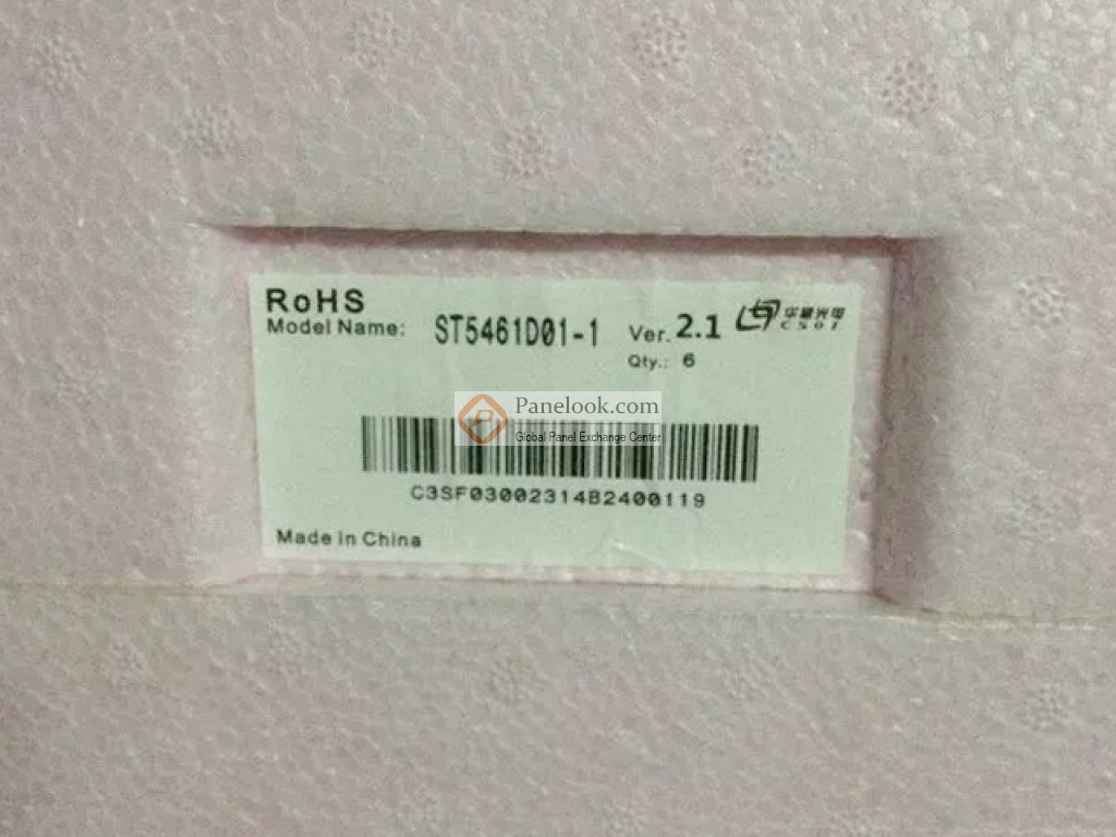 ST5461D01-1是华星光电 (CSOT)推出的一款55吋a-Si TFT-LCD液晶玻璃产品,它无背光,无触摸。此产品工作温度为 0 ~ 50°C,存储温度为 -20 ~ 60°C。它的典型特征屏库总结为: 3D显示,10位灰阶,表面雾面。基于它的特征屏库推荐此型号应用于电视等产品。本产品已邦定16 source COF + 12 gate COG chips驱动IC。根据屏库掌握的情报此产品于2013年Q3量产,当前生产状态为已停产。目前此型号在屏库上有0条现货信息、0家供应商信息,交易氛围清淡。屏库于2014年06月09日对此型号首次建立参数,并于2026年02月12日对参数进行了最后更新。根据华星光电 (CSOT)于2014年5月5日发布的版本号为Ver2.1的产品规格书,ST5461D01-1显示分辨率为3840(RGB)×2160 (UHD),宽高比为16:9 (宽:高),像素采用RGB垂直条状排列。它的显示区域尺寸为1209.6(宽)×680.4(高) mm,外观尺寸为1221.9(宽)×692.65(高)×1.75(厚) mm,表面处理为雾面 (Haze 1.5%),Hard coating (3H),产品净重3.50Kgs (Typ.),采用了0.70+0.70 mm的玻璃基板。本产品无背光。ST5461D01-1采用了V-by-One 8 lane信号接口,总共63 pins,采用端子连接,驱屏电压为12.0V (Typ.)。它的典型垂直刷新率Fv为60Hz。屏库上标注的生产状态仅供参考,不应作为用户的决策依据。屏库®上所显示的面板参数均由屏库电子工程师依据规格书录入,已尽力减少错误,但不能保证参数的完全正确。请以规格书为准!如果开发新产品想采用此液晶玻璃,关于ST5461D01-1的最新的生产状态信息和技术信息,屏库®建议您咨询华星光电 (CSOT)。