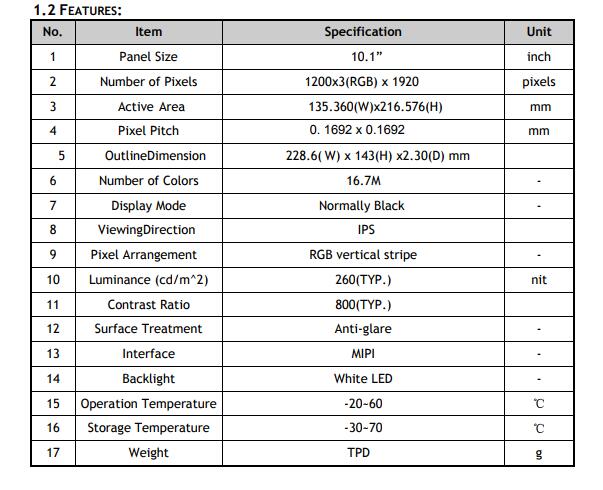 | 面板尺寸: | 10.1" |