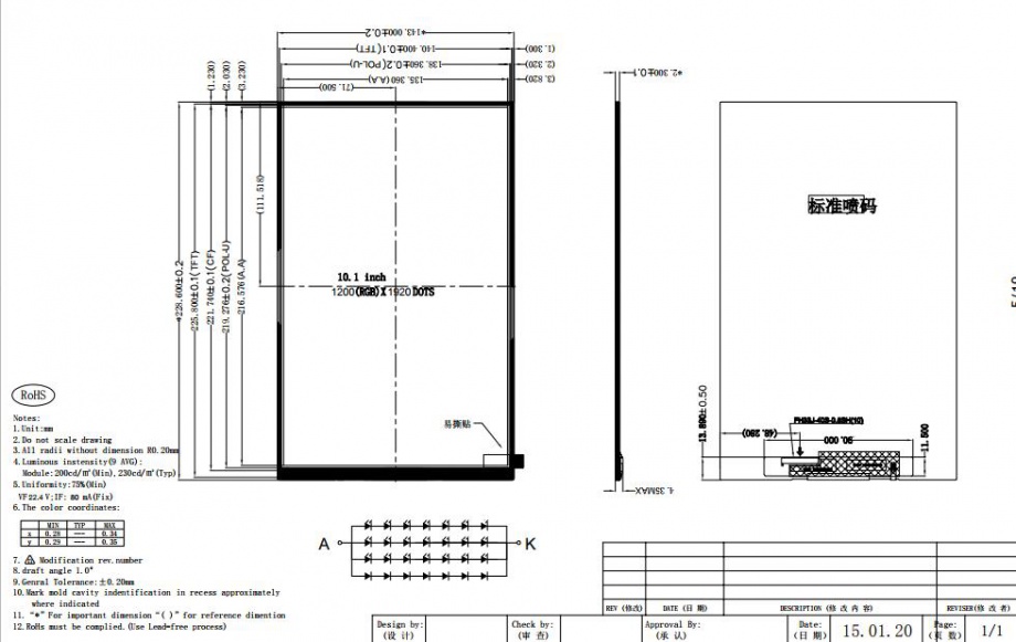 | 关键描述: | 10.1寸TFT液晶显示屏 260亮度 1200*1920分辨率 40Pins MIPI接口 10:16 IPS液晶屏 可带触摸人脸识别热门液晶屏 |