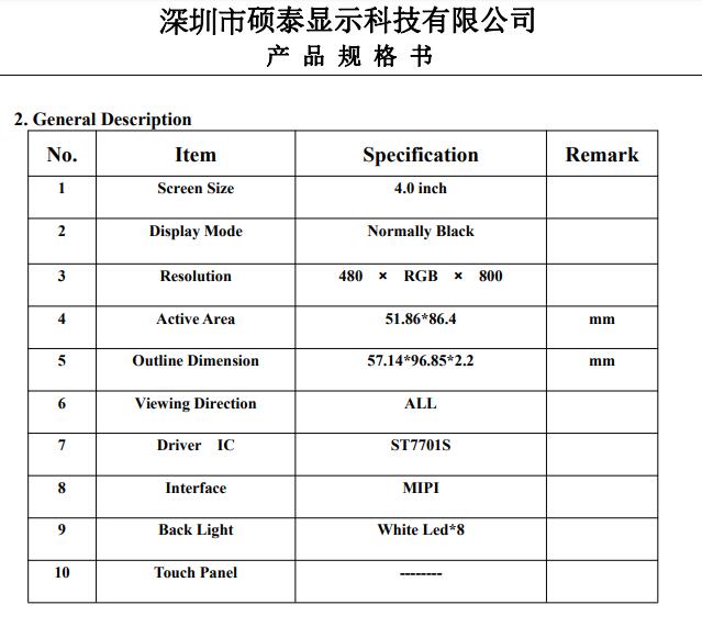 | 关键描述: | 3.97寸液晶显示屏 350亮度 480*800分辨率 IPS宽温全视角液晶屏 26pins MIPI接口 ST7701S |